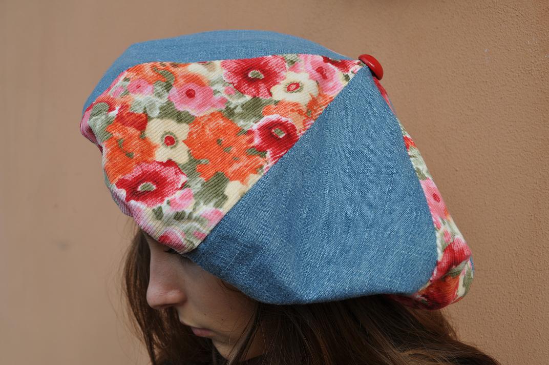 cappello realizzato ai ferri di lana con vari filati fantasia