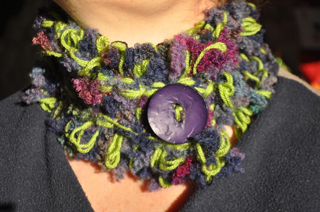 Scaldacollo in lana realizzato a telaio.