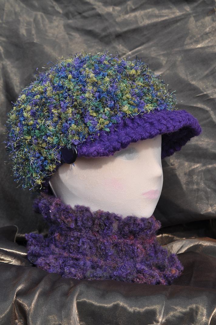 cappello realizzato ai ferri di lana con vari filati fantasia