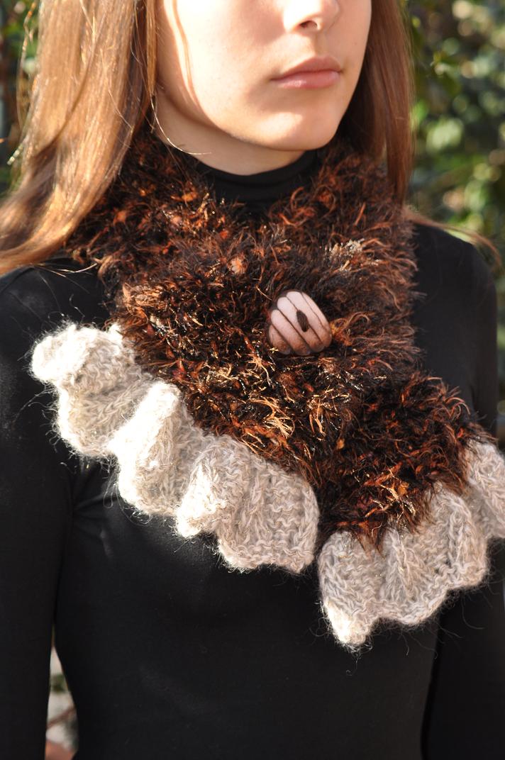 Sciarpa marrone inlana, realizzata ai ferri.